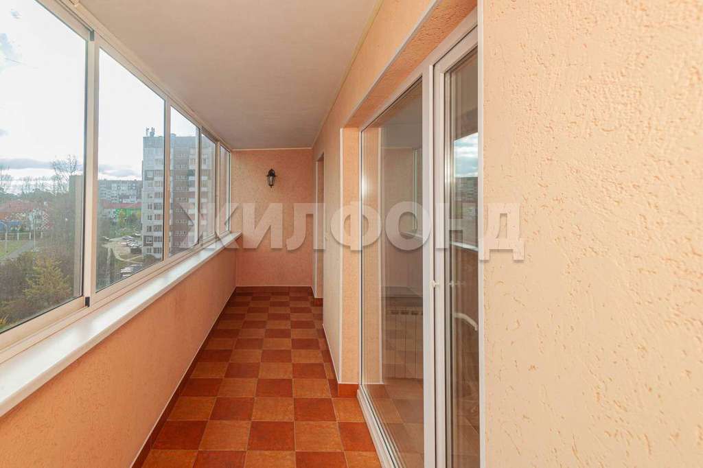 Квартира с большой остеклённой лоджией, французкие окна в комнате и кухне, это даёт много естественного освещения. Просторная кухня и комната, выход на лоджию осуществляется из обоих помещений.