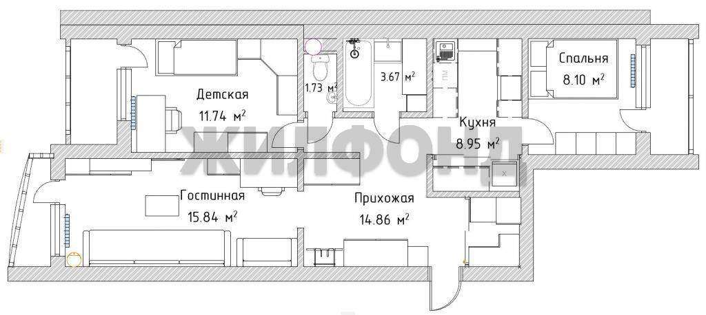 Отличное планировочное решение с раздельным санузлом и изолированными комнатами.