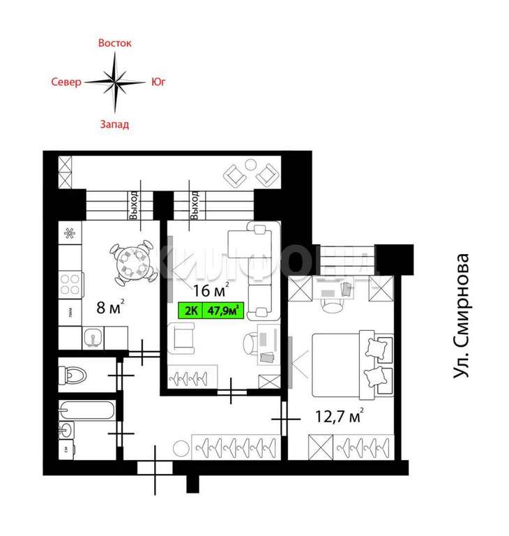Площадь 48 м2 без учета лоджии 7 м2! .,