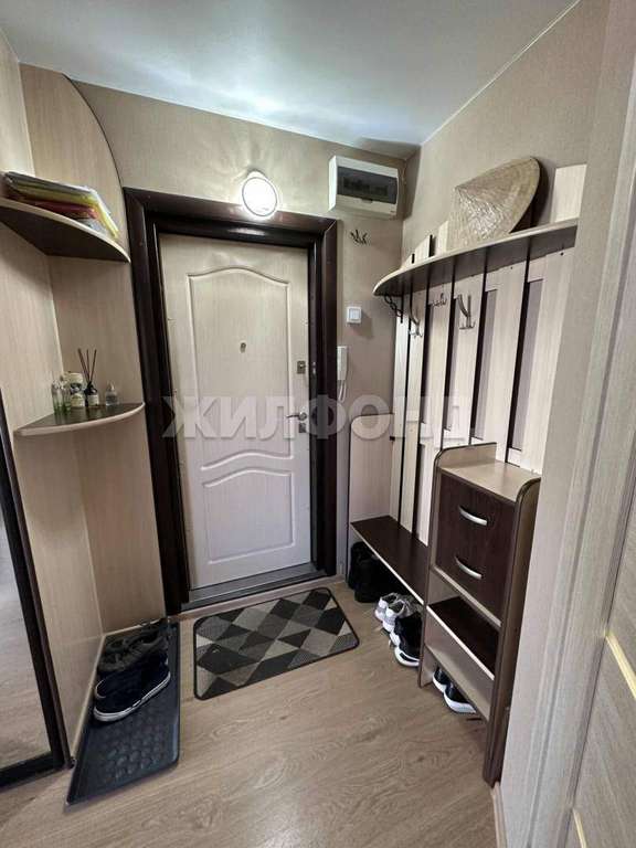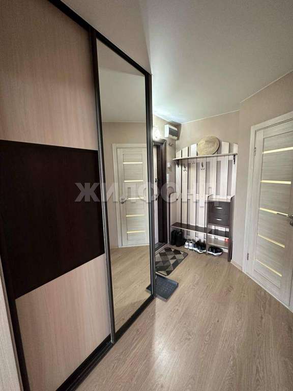 Прихожая: вместительный встроенный шкаф-купе и удобное место для верхней одежды.