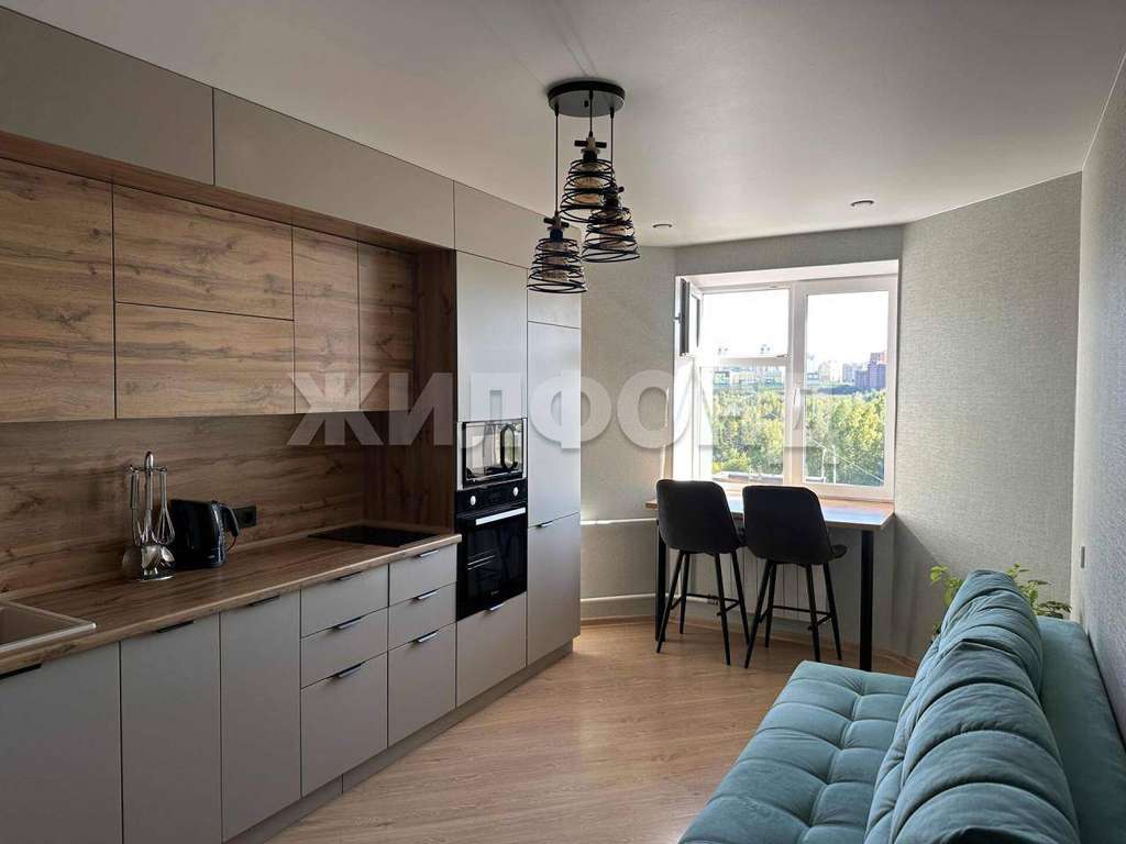 Кухня: стильный гарнитур с многочисленными полочками и секциями для хранения продуктов и посуды. Индукционная варочная поверхность, удобный духовой шкаф, функциональный холодильник Bеkо. Уютный уголок отдыха с диваном, обеденной зоной и прекрасным пейзажем из окна.