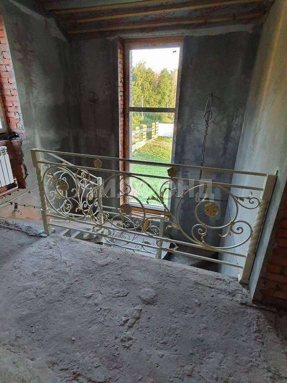 - двухмаршевая лестница с кованными перилами изготовленными под заказ.,