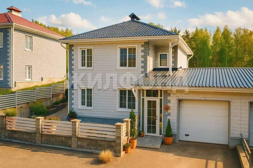 В продаже двухэтажный коттедж в поселке Холмы. Дом общей площадью 185 м2, включая пристроенную теплую веранду, плюс теплый гараж на 2 автомобиля и котельная - еще 55 м2, участок 6 соток. Два санузла, три спальни, отдельная просторная прачечная, отдельная большая гардеробная, котельная в гараже. Дом продается со всей встроенной мебелью - шкафами, кухней, гардеробной.